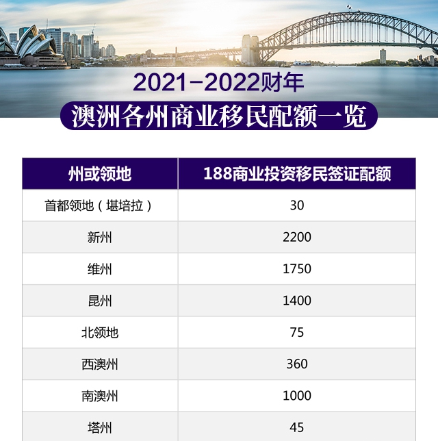 2021-22財年澳洲商業(yè)投資移民配額分布