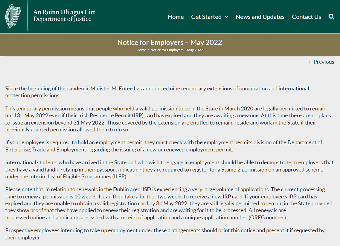 https://www.irishimmigration.ie/notice-for-employers-may-2022/
