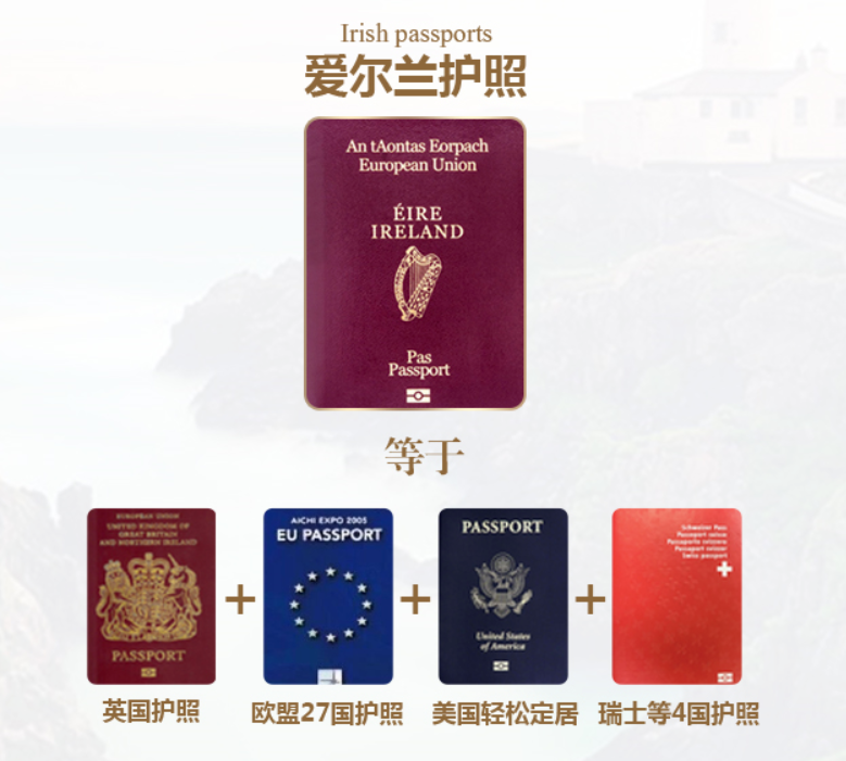移民愛爾蘭,不僅可享受愛爾蘭純正英式教育、廣闊職業(yè)發(fā)展、優(yōu)渥商業(yè)機(jī)會(huì)和優(yōu)厚福利保障,取得愛爾蘭護(hù)照后,還能輕松跳板歐盟+英國(guó)+美國(guó)+瑞士,坐擁全球頂級(jí)資源。