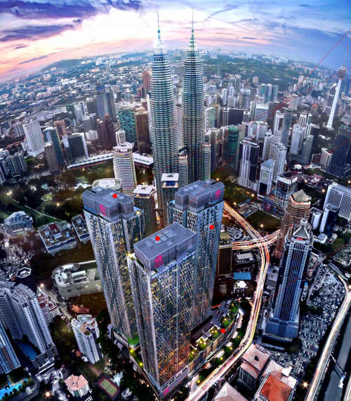 Star Residences坐落在吉隆坡Jalan Yap Kwan Seng,占地4英畝擁有永久產(chǎn)權(quán)的綜合商業(yè)與住宅為一體的綜合發(fā)展規(guī)劃,距離雙子塔僅300米的距離,擁有5層樓的餐飲與娛樂商鋪, 3棟共57層樓高的住宅項目,以W酒店概念 (W Hotel concept) 所啟發(fā)。結(jié)合了時尚與藝術(shù),擁有著恒星的裝扮與夜空抽象的設(shè)計藝術(shù),公寓外觀運用金屬和有色紋理是用來強調(diào)Star公寓的“時尚與城市的門面”;并配有占地1100㎡的生活設(shè)施(相當(dāng)于2個足球場)。