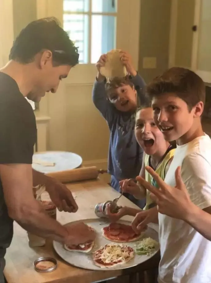 此外,老婆確診,保姆停工,特魯多更是隔離在家單挑三娃,給三個娃準備日常飲食、分發(fā)玩具、陪同玩耍、洗澡……