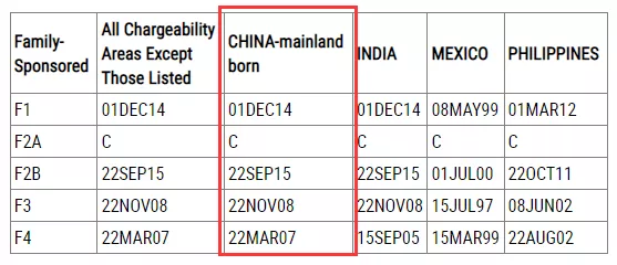 表A為“移民簽證的最后批準日期(移民排期)”(Application Final Action Dates),就是綠卡可簽發的日期,當表A日期前進到申請人的優先日期,申請人就可以拿到綠卡了。