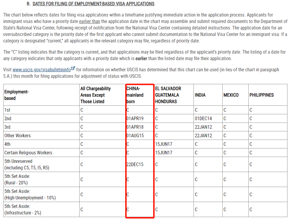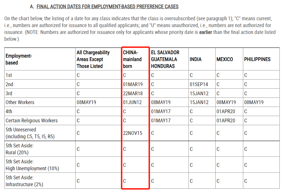 美國國務院簽證辦公室公布了2022年6月的綠卡移民排期。詳情如下:
