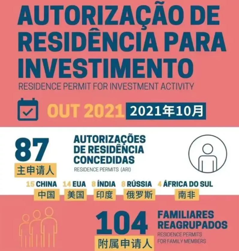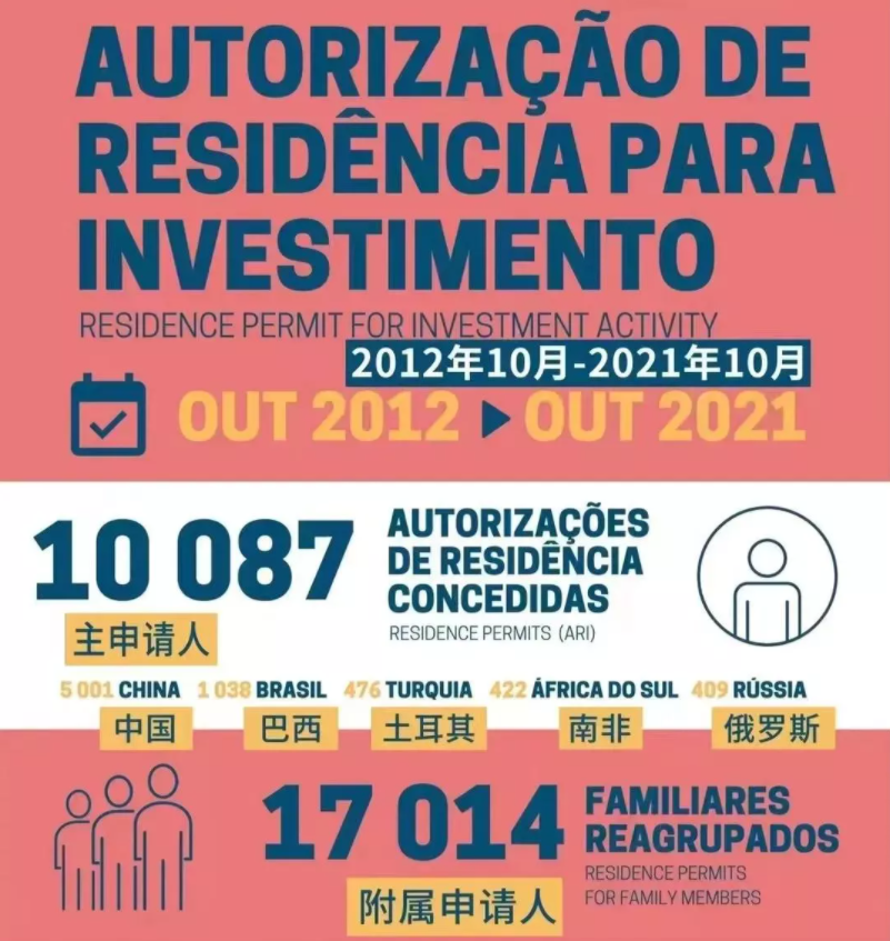截至2021年10月,葡萄牙黃金簽證共簽發了10087位主申請人,總投資額高達60.1億歐元,其中近一半的申請人及投資額來自中國。