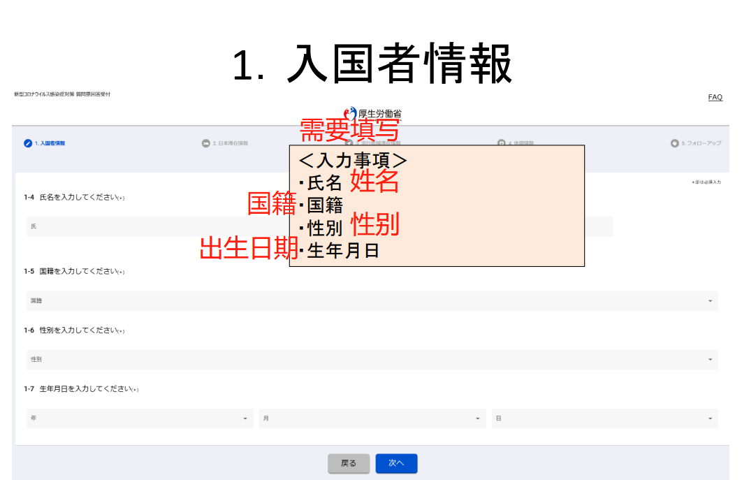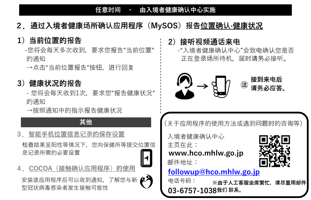 5)通過MySOS,向厚生勞動省“入境者健康確認中心”通報健康狀況及所在地。