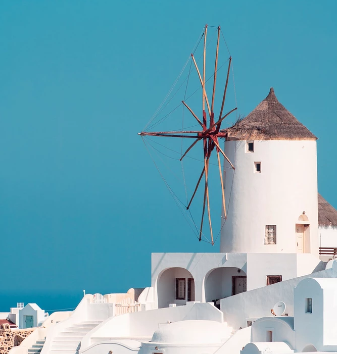 除了讓人狂歡的海灘,米科諾斯島的白天也很好逛,你可以發現不少特有的希臘風景,風車陣就是其中之一。