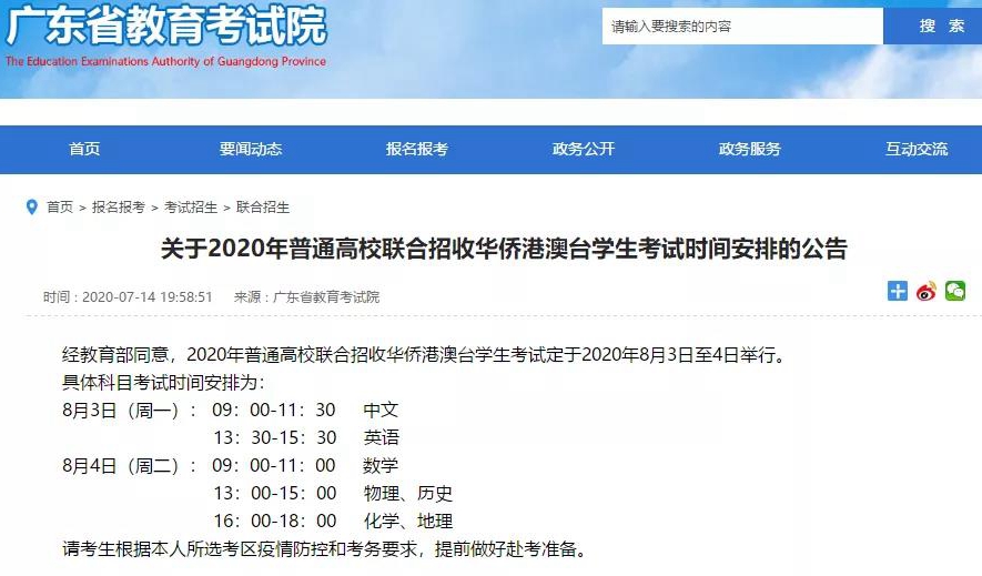 通知 | 離清北名校更近的“華僑生聯考”將于8月3日-4日開考