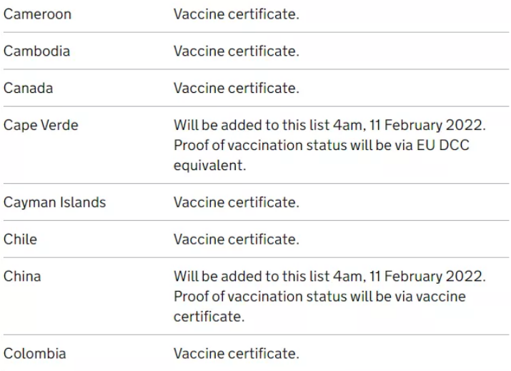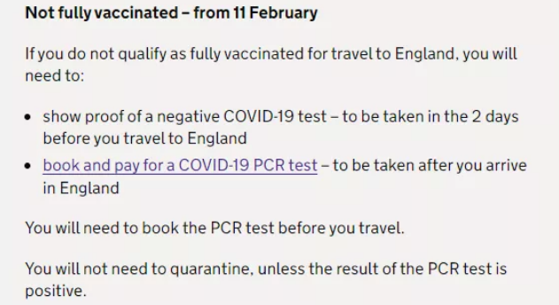 而對于沒有在獲批地區(qū)接種英國認證疫苗的旅客,或未完全接種疫苗的旅行者,需要提供: